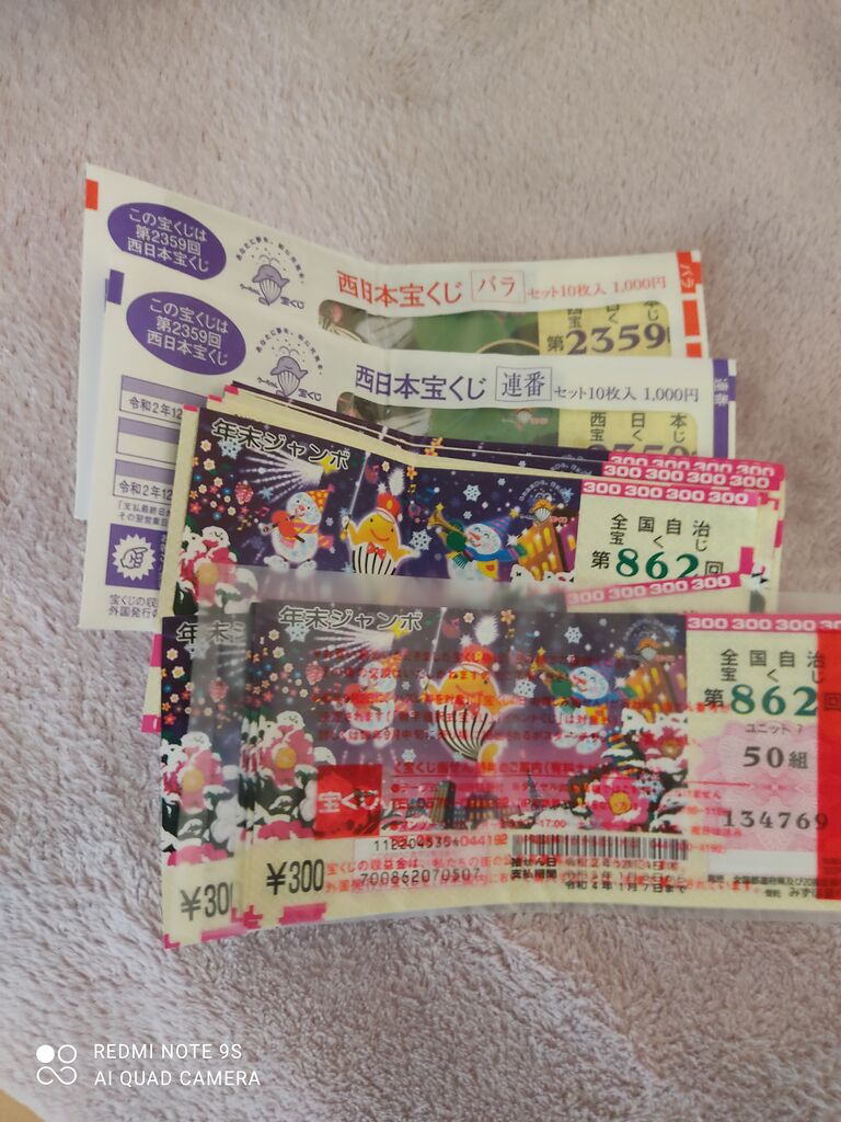 バラと連番の年末ジャンボと西日本宝くじ合計8.000円ぶん
